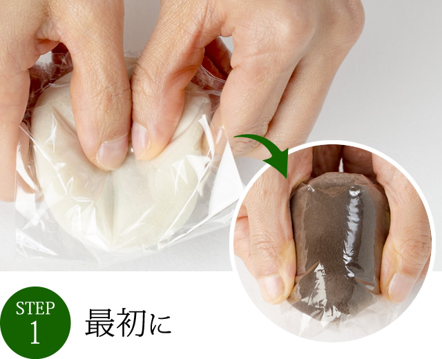 10~20回程度もみほぐすと パフの中の白髪隠しパウダーが表面に出てきます。